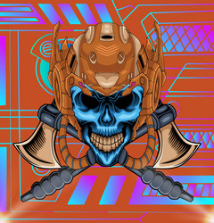 Silver Color Skull Skeleton Open Face And Cross Hand Holding Gun Vector Color Face Design Element